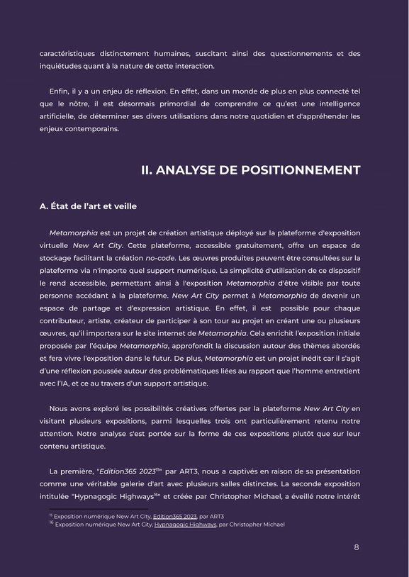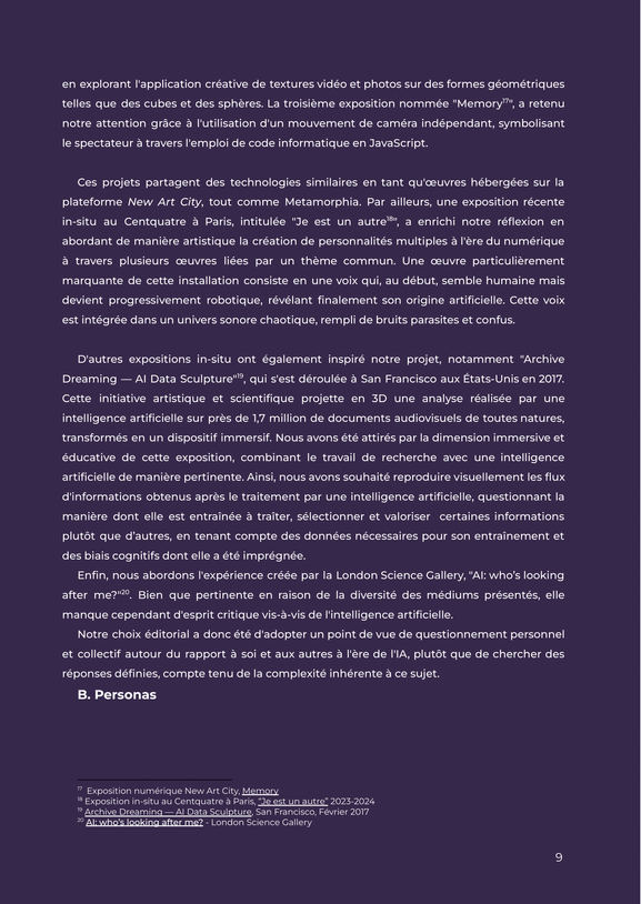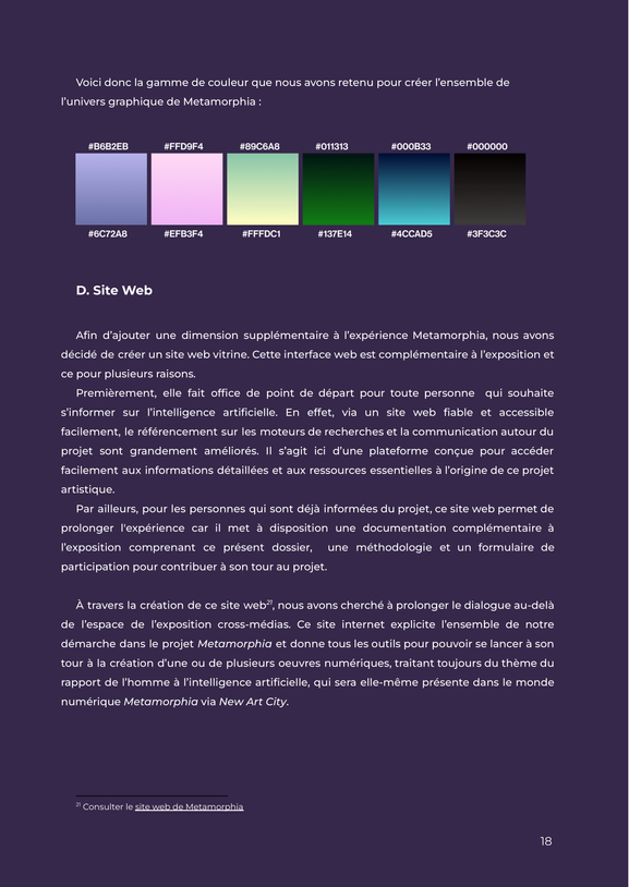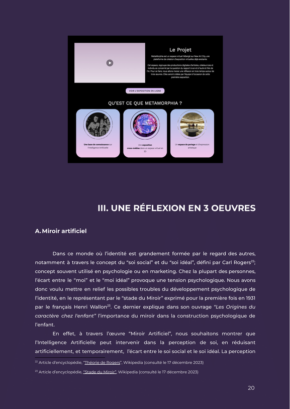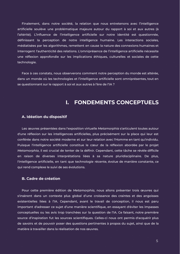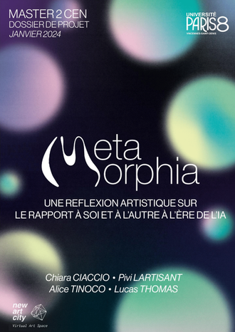 Metamorphia is a universe of discovery and artistic reflection exploring the relationship of oneself to the world in the era of artificial intelligence. Browse the first 3 works offered on the occasion of this virtual exhibition. Project carried out by Pivi Lartisant, Lucas Thomas, Chiara Ciaccio and Alice Tinoco as part of the Master 2 Digital Creation and Publishing.